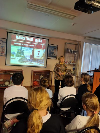 В холле лицея активистами ученического совета совместно с руководителем музея «Чаша жизни» Семеновой Т.Н. была развернута временная музейная экспозиция, посвященная Параду 7 ноября 1941г. в г.Куйбышеве.